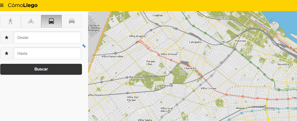 BA Cómo llego? (How do I get there?) is an online map and downloadable app that can help you find the best way to get from A to B in the city, whether on public transport, by car or on foot. Simply input your starting point, your destination and choose how you want to travel, and the map will suggest the best routes. Use the map on the website or download the app.