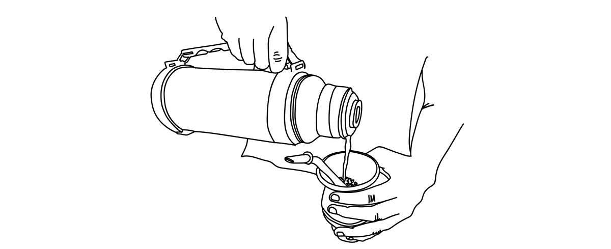 Ahora recostá la yerba sobre una de las paredes del mate para así formar un hueco en la pared opuesta y, luego, colocá agua tibia suavemente. Es fundamental que no hierva para no quemar la yerba y, por ende, perder su gusto. Dejá reposar unos segundos.