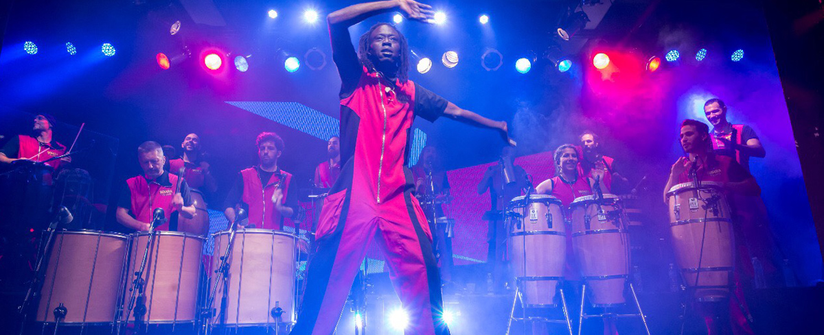A la mitad del show, un trompetista llegó al escenario para agregarle otros matices al ritmo que ya marcaban los instrumentos de percusión.